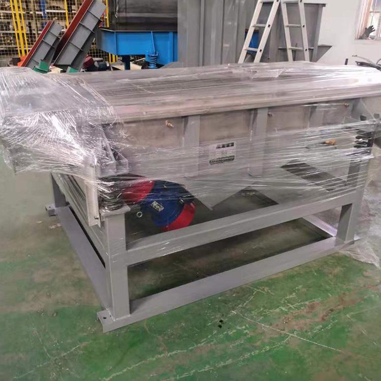 直線振動篩采用雙振動電機驅動,當兩臺振動電機做同步、反向旋轉時,其偏心塊所產生的激振力在平行于電機軸線的方向相互抵消,在垂直于電機軸的方向疊為一合力,因此篩機的運動軌跡為一直線。其兩電機軸相對篩面有一傾角,在激振力和物料自重力的合力作用下,物料在篩面上被拋起跳躍式向前作直線運動,從而達到對物料進行篩選和分級的目的。可用于流水線中實現自動化作業。具有能耗低、結構簡單、易維修、全封閉結構無粉塵溢散的特點。篩分目數400目,可篩分出7種不同粒度的物料。