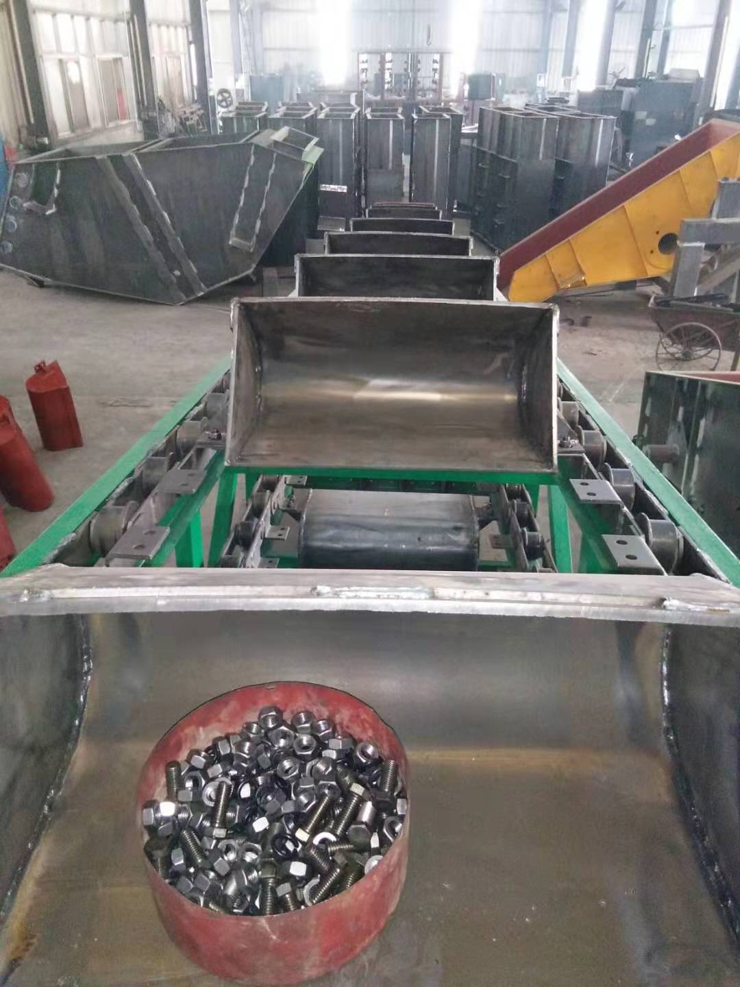 鏈斗輸送機的料斗寬度分別有350mm、450mm、630mm、800mm、 1000mm五個規(guī)格,根據不同的運行場合及環(huán)境要求,鏈斗輸送機分敞開型、半封閉型和全封閉型三種形式。用戶可根據附表中的參數選擇機型,并提出具體的布置形式及尺寸、輸送產量、物料參數和其他要求。該機適用于各種粉狀、塊狀散裝物料的水平或傾角≤60°的輸送,特別適宜一些溫度高、容量大、塊頭大、具有鋒利棱角和磨琢性強的固體物料的輸送。鏈斗式輸送機(鏈斗輸送機)產品廣泛應用于電站、礦山、煤炭等行業(yè)的,進行各種松散物料的輸送;如:鍋爐灰渣、水泥熟料、礦渣、焦炭、碎石等,特別是一些溫度高、容重大、塊度大、具有鋒利銳角和磨琢性強的物料。