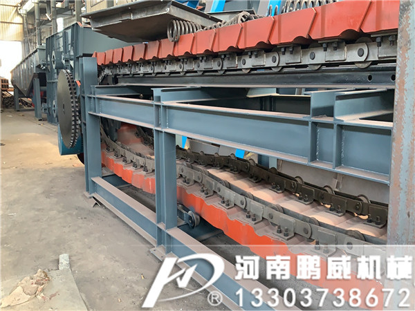 鵬威機械生產的重型鏈板輸送機-鏈板式輸送機-重型鏈板給料機這種設備既能輸送顆粒粒度在5mm以下的細物料,也能輸送1m以上的大塊物料。具有適應性強、可調節輸送能力和連續均勻輸送各種物料的功能。在礦山、建材、化工、冶金等工作部門得到廣泛應用。它具有物料提升高度功能,給料均勻,給料量大小可調、便于控制、操作簡單、能耗低等優點,特別適合特大型及中型礦山設備的應用,也可根據用戶需要生產訂做。