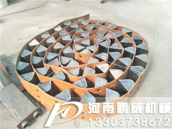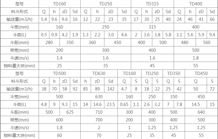 TD型斗式提升機(jī)是膠帶提升機(jī),本公司產(chǎn)品根據(jù)斗子寬度可分四個(gè)型號(hào):TD160、TD250、TD350、TD450,可采用深斗淺斗滿足不同的生產(chǎn)需求,最大能輸送69.6m3/h物料,提升高度為4-30m。傳動(dòng)裝置TD型斗提升機(jī)的傳動(dòng)裝置有兩種形式分別配有YZ型減速器ZQ(或YY)型減速器。YZ型軸減速器直接裝在主軸軸頭上,省去了傳動(dòng)平臺(tái)、聯(lián)軸器等,使結(jié)構(gòu)緊湊、重量輕,而且其內(nèi)部帶有異型輥逆止器,逆止可靠。該減速器噪音低,運(yùn)轉(zhuǎn)平穩(wěn),并隨主軸浮動(dòng),可消除安裝應(yīng)力。TD型斗式提升機(jī)的牽引件為橡膠帶,料斗以一定的間隔固定在橡膠帶上,橡膠帶分別繞過提升機(jī)頭部和底部的滾筒,構(gòu)成具有上升有載分支和下降無載分支的閉合環(huán)形系統(tǒng);工作時(shí),布置在提升機(jī)頭部的驅(qū)動(dòng)裝置通過頭部滾筒將動(dòng)力傳給橡膠帶和料斗,物料從提升機(jī)底部的進(jìn)料口進(jìn)入料斗,料斗將物料提升至頭部的卸料口,在離心力和重力的共同作用下,料斗中的物料經(jīng)卸料口卸出。