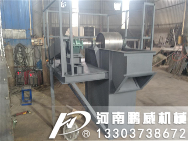 TD型斗式提升機(jī)主要由驅(qū)動(dòng)裝置、上部區(qū)段、料斗與橡膠帶、中殼體、帶檢修門的中殼體、下部區(qū)段等組成,其主要結(jié)構(gòu)特點(diǎn)是:采用橡膠帶作為牽引構(gòu)件,具有自重小、撓性好、運(yùn)行平穩(wěn)、磨損小的特點(diǎn)。殼體之間、檢修門與殼體之間處均設(shè)置有密封裝置,保證無粉塵外泄,清潔、環(huán)保。機(jī)殼和頭罩設(shè)有多個(gè)檢修門,一旦出現(xiàn)故障或者需要更換料斗等易損件時(shí),可以便捷的進(jìn)行檢修或更換。在傳統(tǒng)裝置內(nèi)部設(shè)有高可靠性的逆止機(jī)構(gòu),在防止?fàn)恳洼d料料斗逆行的同時(shí),使傳動(dòng)裝置整體結(jié)構(gòu)緊湊、占用空間小。中部殼體均為折彎構(gòu)件焊接而成,在提高機(jī)殼整體剛度的同時(shí),使機(jī)殼各段節(jié)具有良好的通用性和互換性,保證組裝完畢后,機(jī)殼具有良好的垂直度。在底部設(shè)有張緊機(jī)構(gòu),保證工作時(shí)皮帶有足夠的預(yù)緊力;同時(shí)在底部滾筒裝置中帶有自動(dòng)調(diào)心機(jī)構(gòu),以防止?jié)L筒受到不均勻拉力后發(fā)生傾斜,進(jìn)而造成設(shè)備故障。
